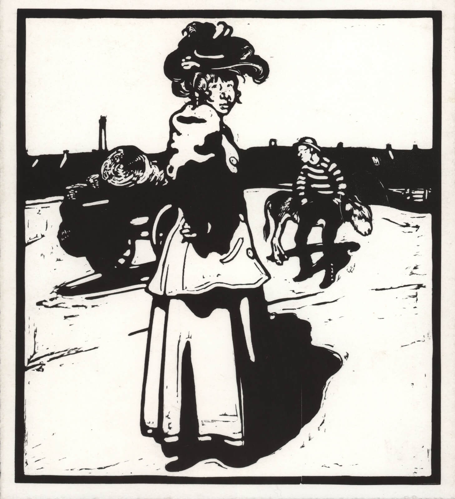 Nicholson produced two sample cuts, A was an Artist and D is for Dandy, which Heinemann approved, then, on the 27th of November 1896, Nicholson signed an agreement with Heinemann to produce a set of twenty-six woodcuts representing the Alphabet’.