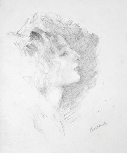 The strategy of using shadows, and the foil of hair and a hat, to offset a model in profile was one of Belleroche’s most favoured compositional devices