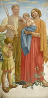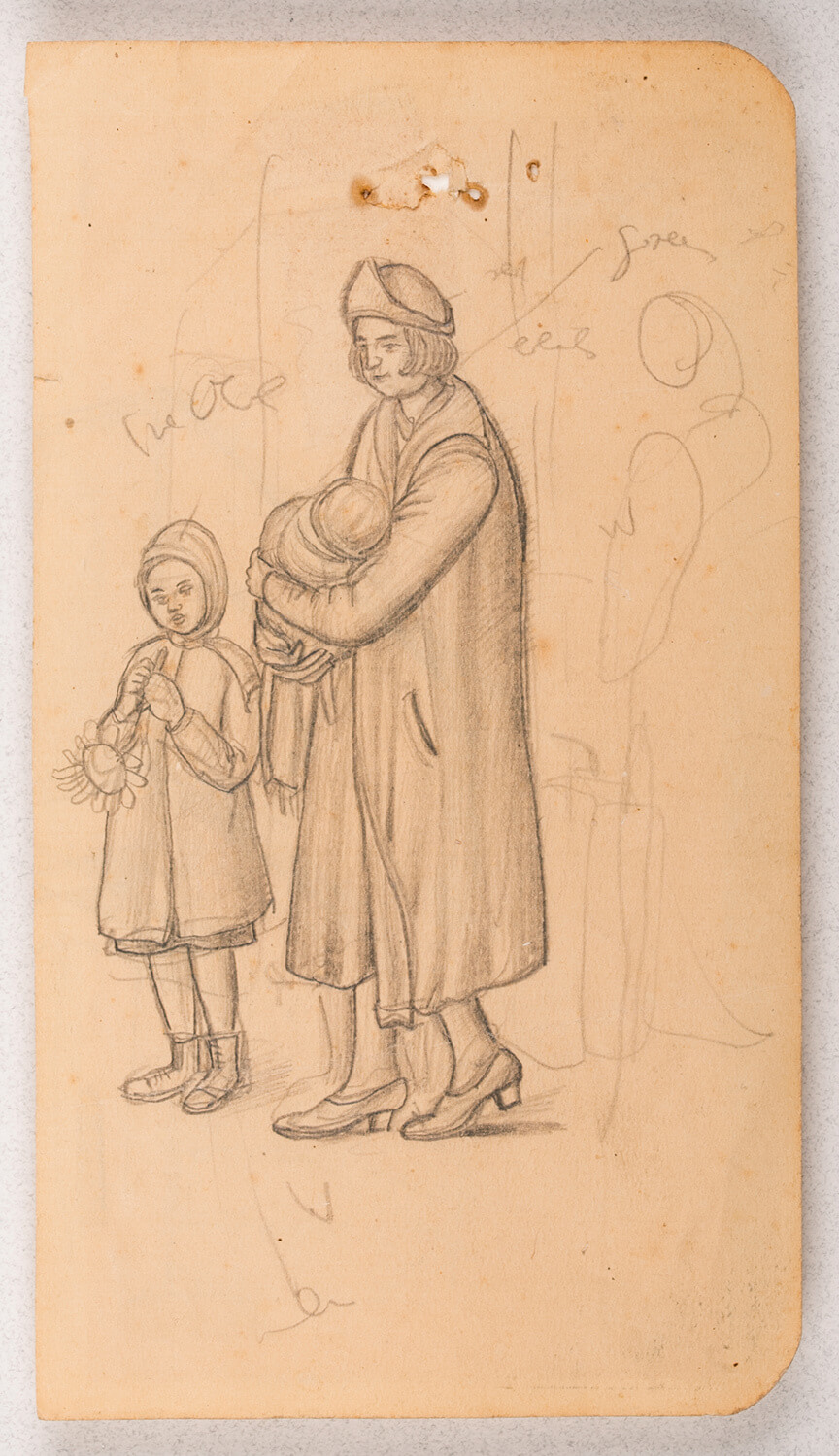 Lewis often based his larger compositions on  sketches made on the spot, here for instance of figure observed in the street.  The grouping of this mother child and baby might have been in part the inspiration for his Rome Scholarship entry: Colour Study for the Central Group of Allegory, c. 1929