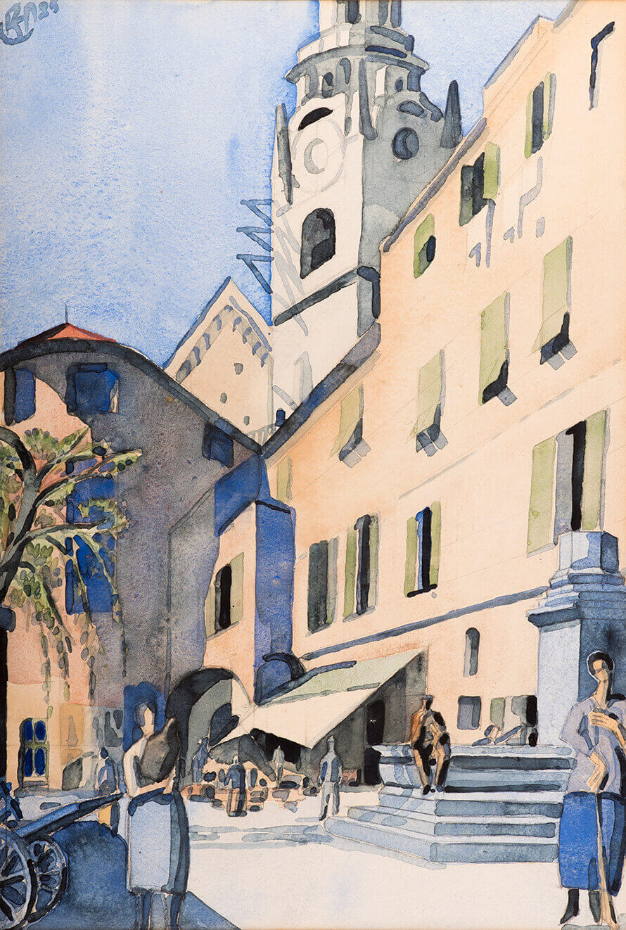 He exhibited at the Manchester Society of Modern Painters, RA, RBA, RSMA and with the NEAC. In 1925 he received the Grand Prix at the International Exhibition of Decorative Art, Paris and in 1935 he was elected RBA. He exhibited at a number of leading galleries in London and the provinces, and was elected to the Royal Society of British Artists, the Royal Institute of Painters in Water Colours, the Royal Society of Marine Artists, the New English Art Club and the NS. In 1995, the Chris Beetles Gallery hosted ‘Manchester’s First Modernist’, an important retrospective exhibition of the work of Karl Hagedorn organised in conjunction with the Whitworth Art Gallery, Manchester. It was accompanied by an illustrated biographical catalogue. His work is in the collection of the Atkinson Art Gallery, BM, GAC, Manchester City Art Gallery V&A and the Wellcome Library.
