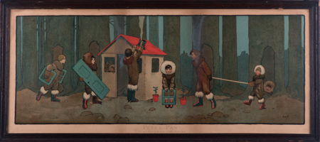 Cartoonist, illustrator, designer, painter and teacher, born in Walmer, Kent. He was the father of the artist Joan Hassall and the writer Christopher Hassall. After education in England and Germany, and twice failing to gain a commission at Sandhurst, he emigrated to Manitoba, Canada, where he farmed. In the early 1890s, after some success contributing sketches to The Graphic, he moved back to Europe, studying art in Antwerp, then enrolling at the Academie Julian in Paris. Returning to England in the mid 1890s Hassall became a popular cartoonist and one of the most celebrated poster designers of his generation (his designs Included the well-known advertisement “Skegness Is so bracing.”). Hassall illustrated numerous books (especially for Blackie and Co.) and periodicals such as The Idler, London Opinion, Pearson’s Magazine and The Tatler. For many years he ran his own school of art, the New Art School and School of Poster Design. He was a member of RI, RWA, London Sketch and Savage Clubs. He lived in London and designed posters for the Great Northern Railway and numerous other clients. Like many artists who achieved a huge reputations through commercial work, Hassall craved public recognition of a different sort. Through his Royal Academy exhibits – larger, ambitious, historical works – he sought to establish himself as an academic painter. These works, however, lack the originality, liveliness and invention of his instantly recognisable and hugely successful commercial work.