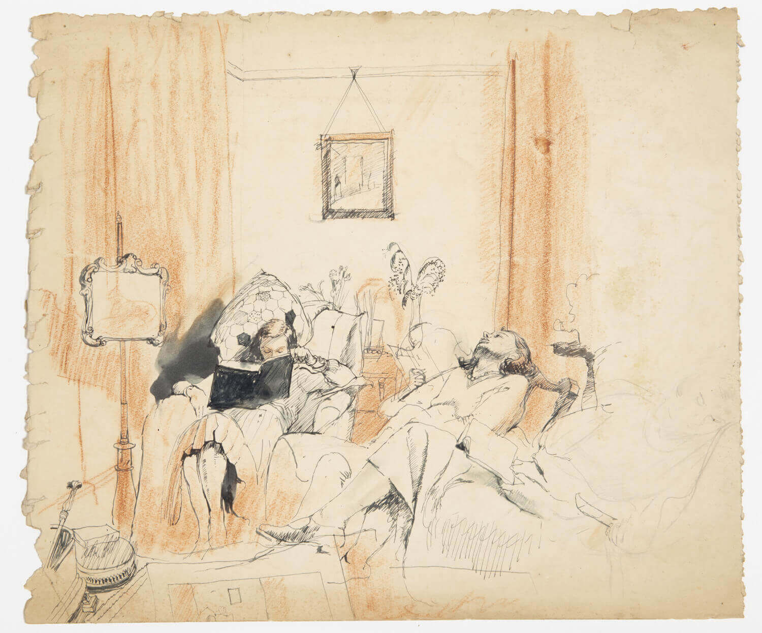 Chalk Nude Study with Sketching Figure in Foreground