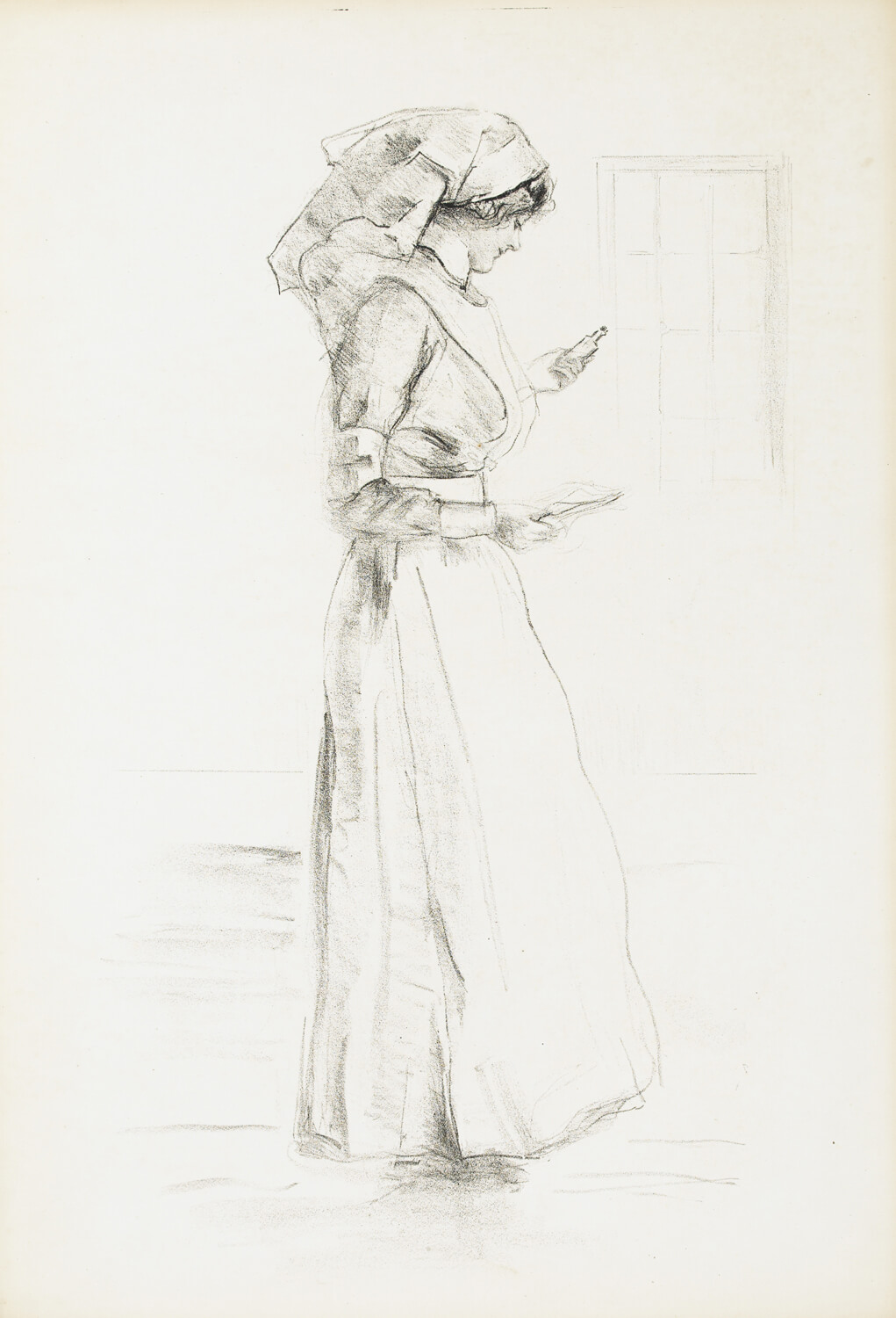 Although born in Wales, he was the son of the Marquis de Belleroche, of one of the most ancient French noble families who, being Huguenots, had fled to England in 1685. In 1871, following the death of his father, he moved back to Paris with his family. After he had finished school there, he studied at the studio of Carolus Duran, and spent long hours copying at the Paris museums. He soon became familiar with the leading painters and intellectuals of the day, and became a founder member of the Salon d’Automne, exhibiting alongside the Impressionists and associating with Emile Zola, Oscar Wilde, Albert Moore, Renoir, Degas, Helleu and Toulouse-Lautrec. Toulouse-Lautrec and Belleroche were exact contemporaries, who first met at the age of eighteen. Belleroche painted Toulouse-Lautrec’s portrait and shared with him a passion for the model Lili, who epitomised the Belle Epoch aesthetic of Toulouse-Lautrec’s most celebrated posters. Lili became Belleroche’s favourite model and mistress. In 1882 Belleroche also met the already acclaimed American painter John Singer Sargent, who recognised Belleroche’s talent and empathised with his free drawing style and sensitivity to light. They became life-long friends. Sargent’s handling of pastel was a great inspiration to Belleroche, while Belleroche’s sensitivity to tone and creation of form through the modeling of light exerted a strong influence on Sargent. In 1900, Belleroche became fascinated by the medium of lithography and by 1905 he was a leading figure in the field of lithographic portraiture. A.M. Hind, a former keeper of prints at the British Museum, described his works in lithography as “amongst the greatest achievements of the craft since its discovery.”
