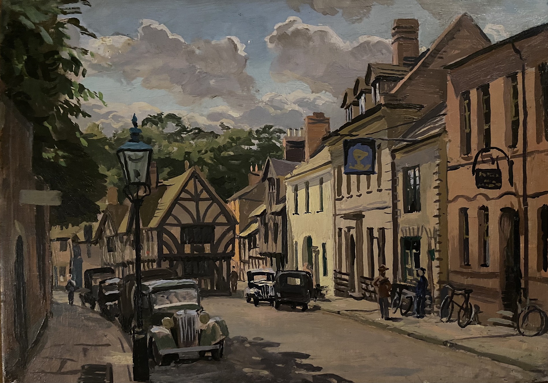 Inscribed on verso ‘West country town’. Oil on panel
