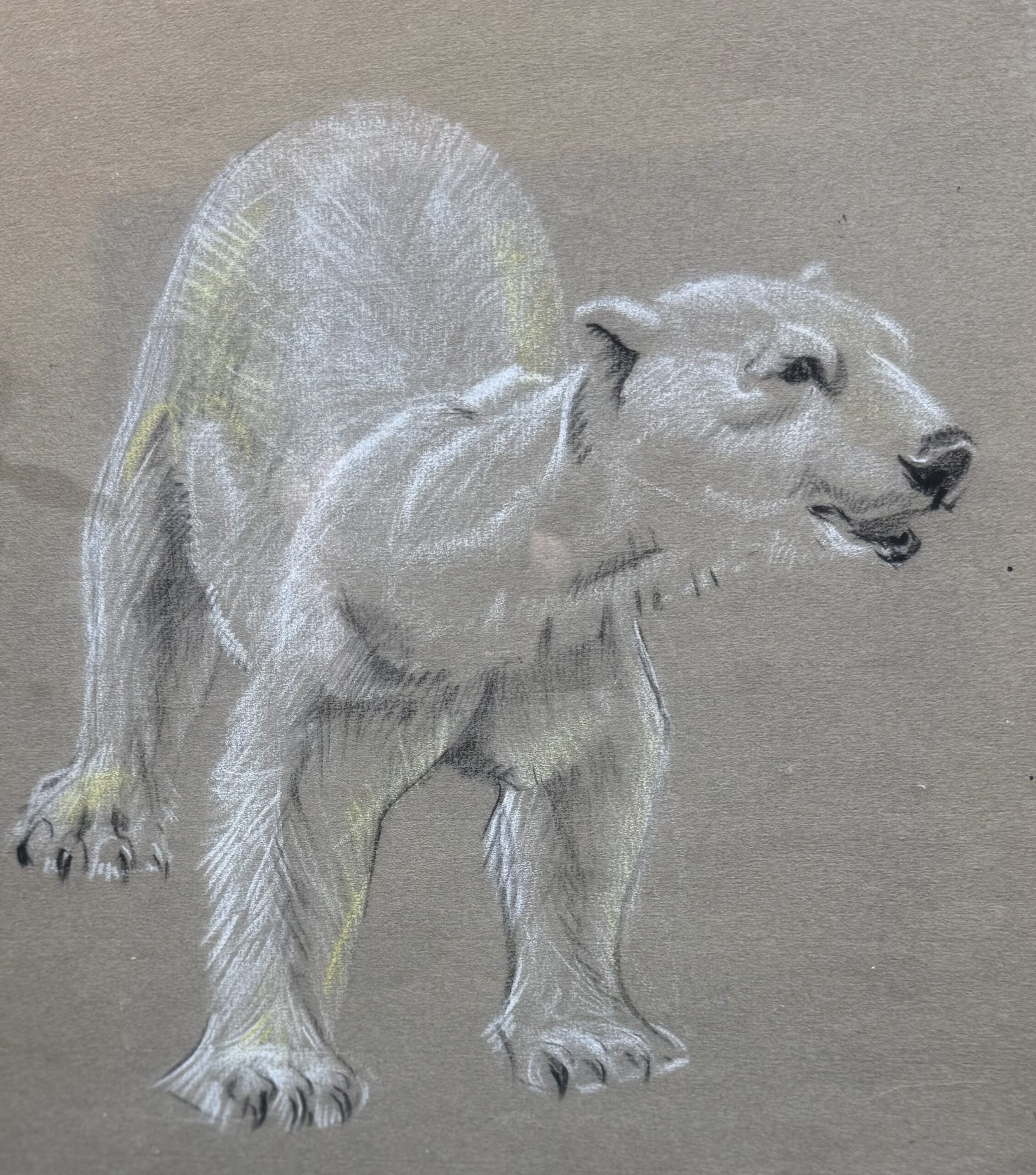 Chalk and pastel on grey paper