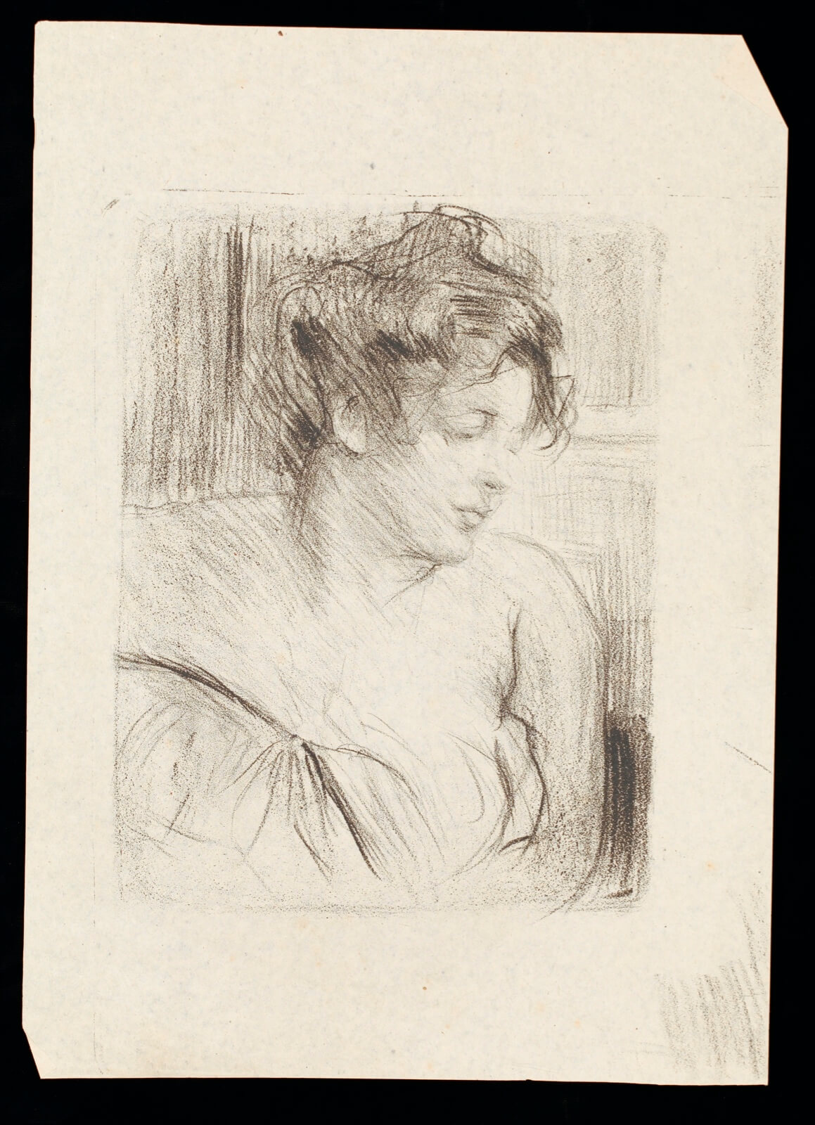 Although born in Wales, he was the son of the Marquis de Belleroche, of one of the most ancient French noble families who, being Huguenots, had fled to England in 1685. In 1871, following the death of his father, he moved back to Paris with his family. After he had finished school there, he studied at the studio of Carolus Duran, and spent long hours copying at the Paris museums. He soon became familiar with the leading painters and intellectuals of the day, and became a founder member of the Salon d’Automne, exhibiting alongside the Impressionists and associating with Emile Zola, Oscar Wilde, Albert Moore, Renoir, Degas, Helleu and Toulouse-Lautrec. Toulouse-Lautrec and Belleroche were exact contemporaries, who first met at the age of eighteen. Belleroche painted Toulouse-Lautrec’s portrait and shared with him a passion for the model Lili, who epitomised the Belle Epoch aesthetic of Toulouse-Lautrec’s most celebrated posters. Lili became Belleroche’s favourite model and mistress. In 1882 Belleroche also met the already acclaimed American painter John Singer Sargent, who recognised Belleroche’s talent and empathised with his free drawing style and sensitivity to light. They became life-long friends. Sargent’s handling of pastel was a great inspiration to Belleroche, while Belleroche’s sensitivity to tone and creation of form through the modeling of light exerted a strong influence on Sargent. In 1900, Belleroche became fascinated by the medium of lithography and by 1905 he was a leading figure in the field of lithographic portraiture. A.M. Hind, a former keeper of prints at the British Museum, described his works in lithography as “amongst the greatest achievements of the craft since its discovery.”