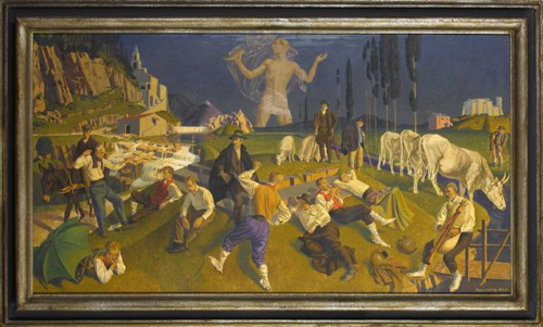 Lyon was born in Liverpool, he studied art at the Royal College of Art and the British School at Rome, 1924. He became lecturer in fine art and master of painting at King’s College, Newcastle upon Tyne, 1932. For eight years from 1934 Lyon was tutor to the Ashington Group of spare-time Northumberland miner artists, one of the most remarkable of such groups to emerge in the inter-war years. From 1942-6o Lyon was principal of Edinburgh College of Art. He exhibited RA, RBA, RP and in the provinces. Also painted murals for Western General Hospital, Edinburgh, and King’s College Hospital dental department. Lived at Rushlake Green, Sussex.