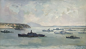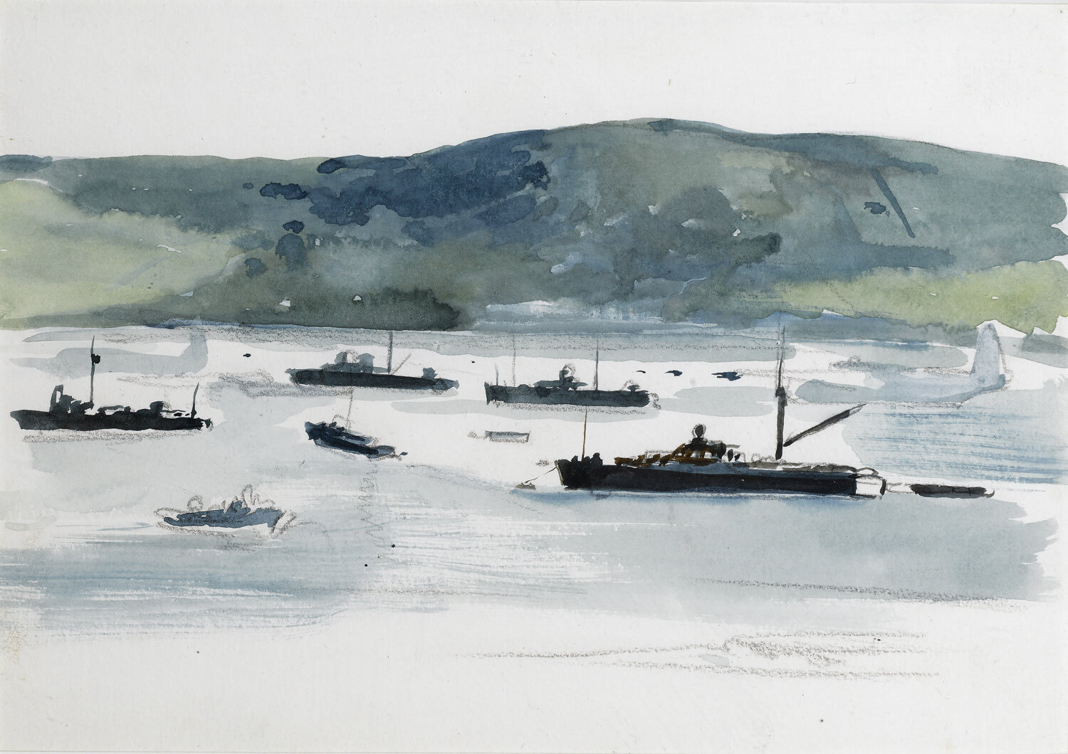 This is possibly a study for Tobermory from the Admiral’s Flagship, c.1942, painting now in collection of The Imperial War Museum.