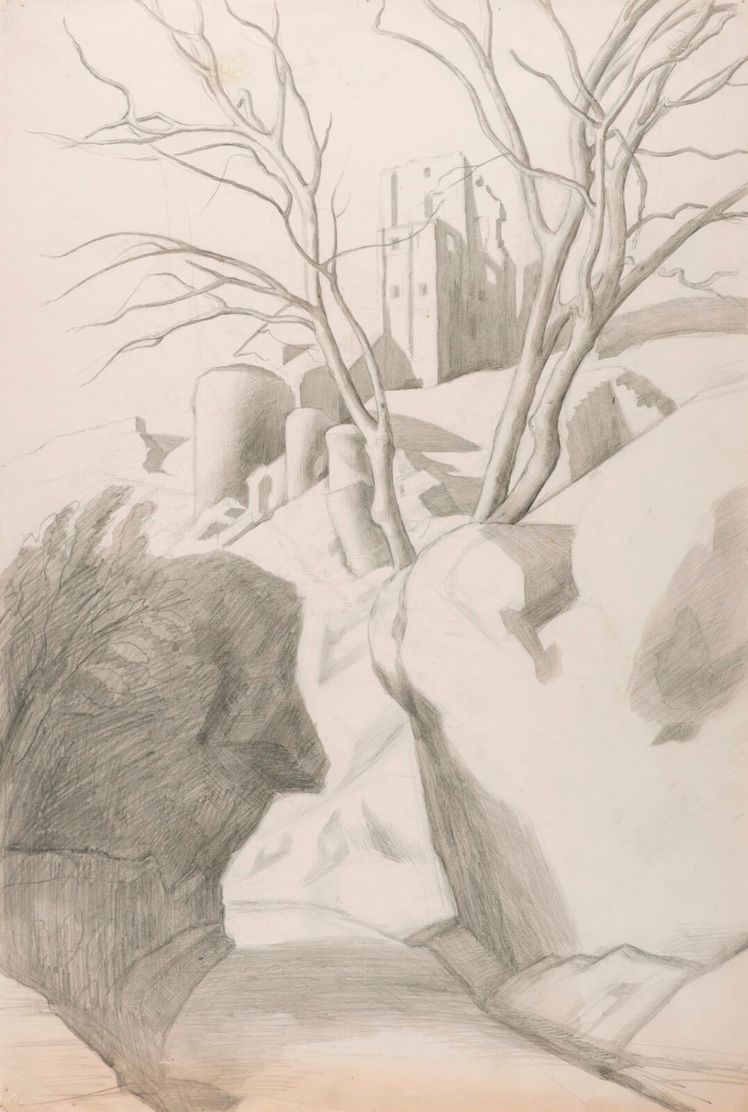 A reclusive figure whose work has remained largely unseen, Finney studied under Eric Gill before winning a scholarship to the Royal College of Art in the early 1920’s; his closest friends there were Charles Mahoney,(1903-1968), Gerald Ososki (1903-1981) and Barnett Freedman (1901-1958). Finney had the good fortune to attend the RCA as part of a golden generation, many of whom went on to become some of Britain’s best loved artists (amongst them Ravilious, Bawden, Hepworth, Moore, Dunbar, Sorrell, and Piper). After a travelling scholarship to Rome, in 1929, Finney returned to become a teacher at Chelsea School of Art – working alongside Henry Moore who was in charge of the Sculpture Department and Graham Sutherland, the Department of Design.