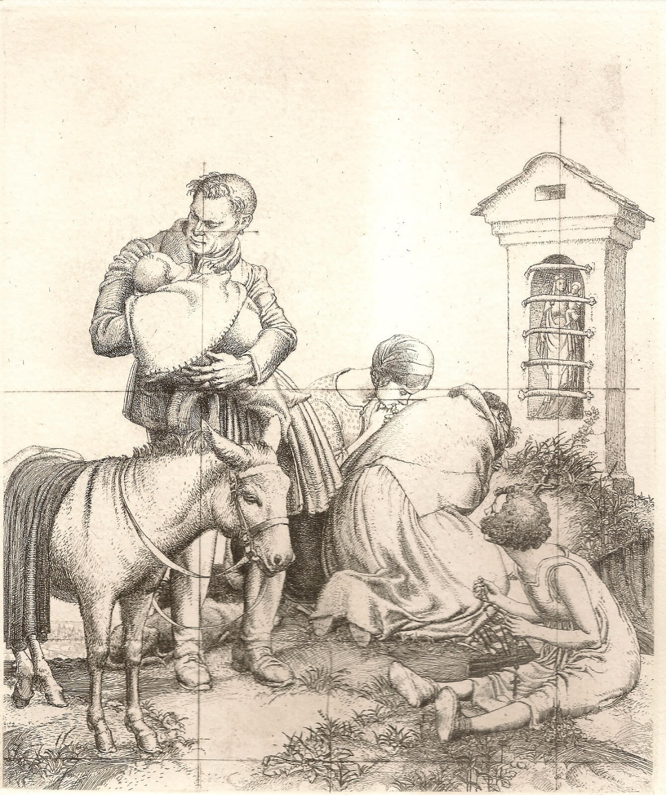 Austin’s latest plates are contemporary in subject.  At the same time his interest in Millais, the Millais of book-illustrations, is explicit.  Surely this strain, at once homely, intimate and romantic, is at the centre of the tradition of English art.  Austin’s line remains clear: his tone is given by a number of short flicks and shadings.  He is thus nearer in technique to the fifteenth-century German engravers than to Durer or Lucas van Leyden. In drawing and composition there is nothing archaic. Of recent years he has produced three or four plates regularly each year.  Of these one or two commonly represent new treatments of subjects previously treated in a rather different way.  He is fascinated with certain subjects, bells, stairs, kneeling figures, weathered wood.But he also advances to new subjects; in 1936 two very fine portraits and in 1937 the Young Mother.
