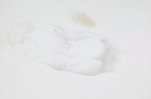 The medium was perfectly suited to the subtlety and technical quality of Strang’s draughtsmanship. Another silverpoint by Strang depicting a reclining female nude, viewed from behind, can be seen in the collection of the Scottish National Gallery of Art.