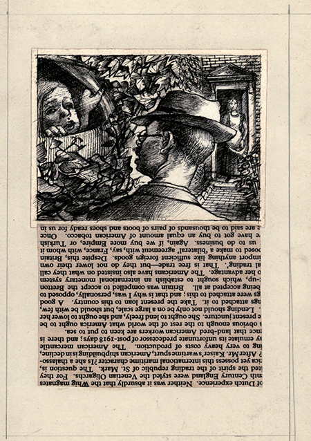 This was one of three drawings that illustrated Sorrell’s short (unpublished) story for Lilliput magazine, The Broken Gates.  This is a self-portrait seen from behind.