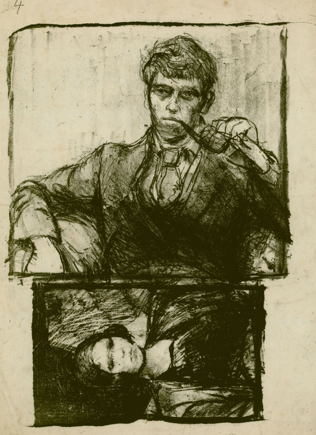 Self Portrait, mid 1920’s, with portrait of a young woman below