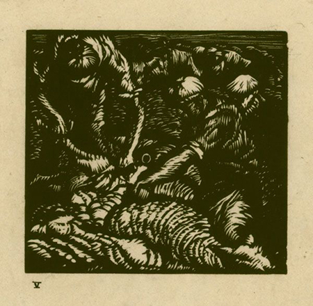 This is possibly a study for Brangwyn’s woodcut of 1919 Shearing Sheep.![]()