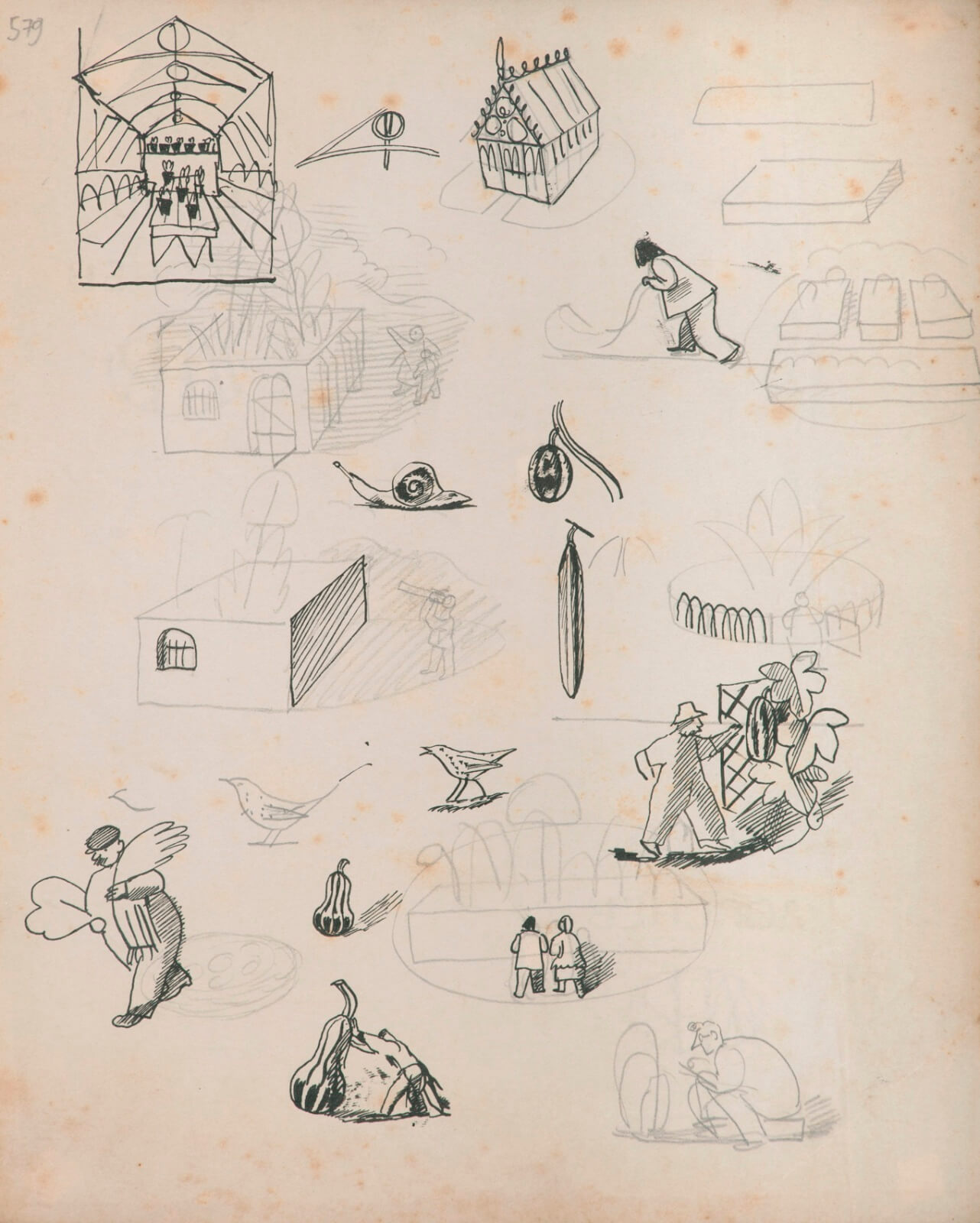 Sheet of studies for Gardeners’ diary