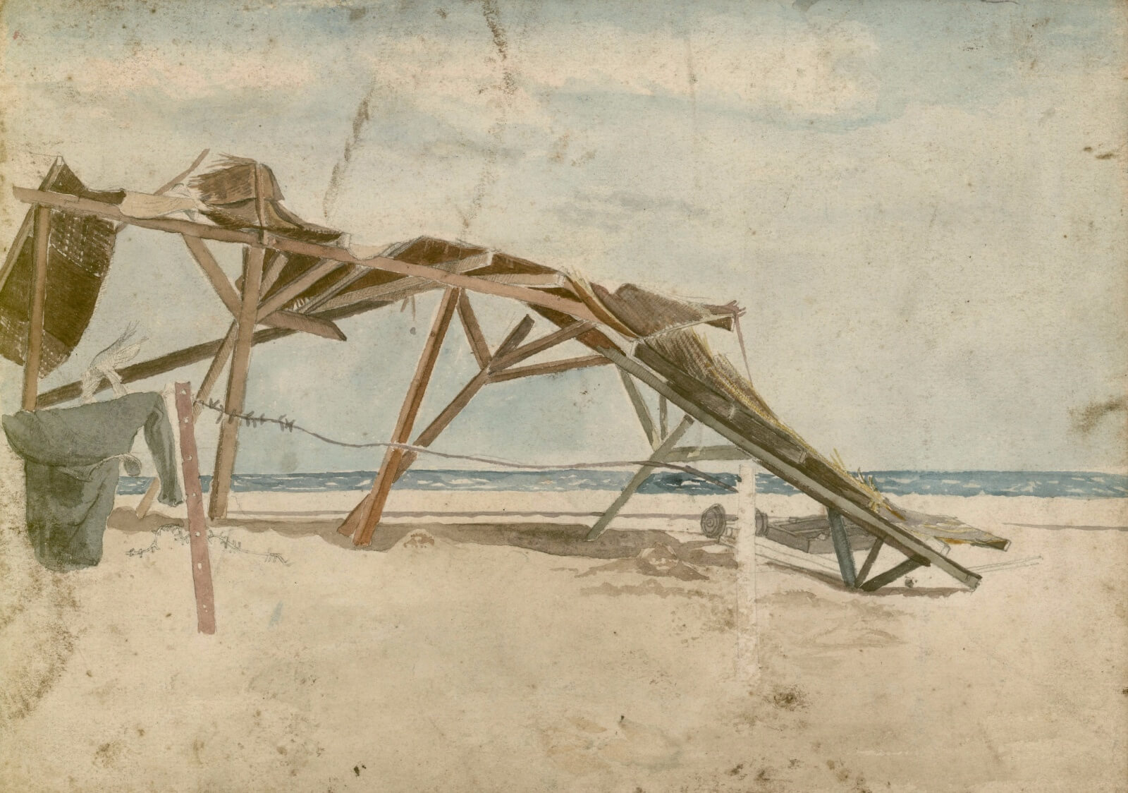Shelter with discarded munitions cases, Sinai Desert, 1916-17