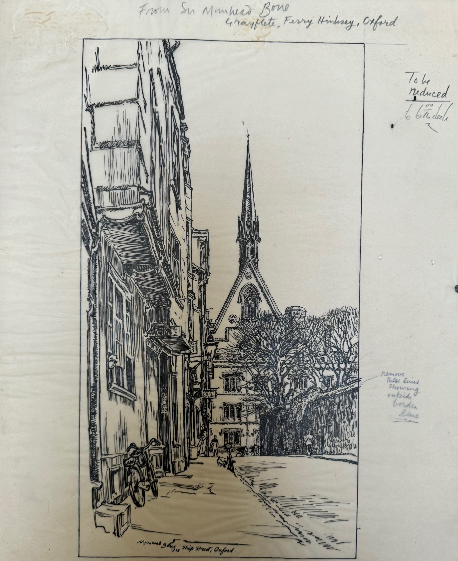 Signed Muirhead Bone, 1932, Ship Street, Oxford.