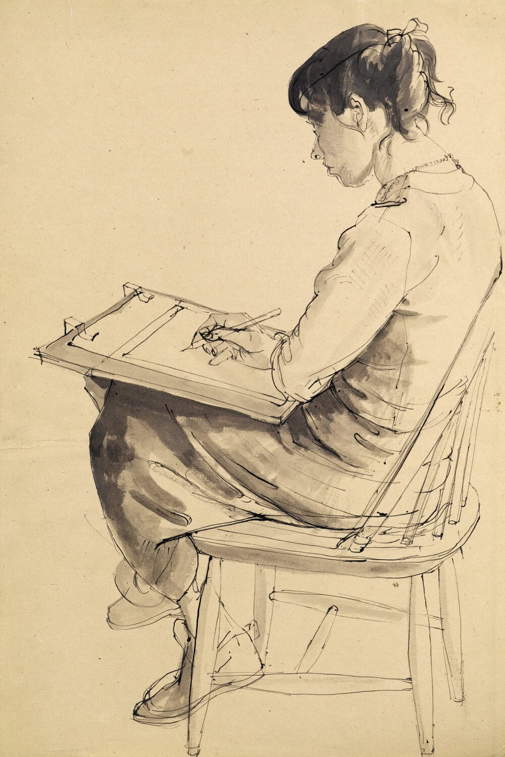 Painter, draughtsman, muralist and teacher, born in Bushey, Hertfordshire, son of a commercial artist and illustrator, George Christie. From the age of 12 Christie lived in Glasgow, from 1934 working in a solicitor’s office, then became an apprentice lithographic draughtsman and during World War II served in the Scottish Rifles, resulting work finding its way into the Imperial War Museum. Christie studied at Glasgow School of Art, 1946-50, mural painting under Walter Pritchard. He gained the Newberry Medal in 1950 and a post-diploma year’s study. After a period teaching and a six-month travelling scholarship taken on the continent Christie resumed teaching and completed many murals, including Glasgow University and the Iona Community House. With his wife Eleanor, a sculptor, he moved to London in 1957 and again taught, while completing murals and much other work. Christie and his wife held a show at Woodlands Gallery in 1979, shortly before he died. This showed him to be a painter with a rich palette, notable for his female nude studies, as well as a consummate draughtsman. His widow did much to promote Christie’s work  after his death. There were exhibitions at Cyril Gerber Fine Art, Glasgow, and Fairhurst Gallery in 1988, preceded by a show of his drawings at Glasgow School of Art. He was included in Children & Childhood at the City Art Centre, Edinburgh, in 1989; there was a large show of his schoolchildren drawings at the Bethnal Green Museum of Childhood, 1991; and further small exhibitions at Blackheath Concert Halls and in Norwich. In 2004, there was an exhibition at Wimpole Hall, Cambridgeshire, accompanied by a monograph, Nature and Humanity, The Work of Fyffe Christie 1918-1979, published by Sansom & Company Ltd.
