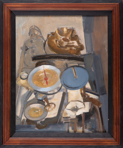 Painter of pictures and murals and draughtsman, born in Lewes, Sussex. He studied at King Edward VII School of Art in Newcastle upon Tyne under Richard Hatton, at Royal College of Art with William Rothenstein and then in Italy as a Prix de Rome winner, 1923. Elected RA in 1938. Lawrence was a fine figure painter and a RA stalwart for many years, his work having a strong underlying draughtsmanship. Also showed RP of which he was a member and widely abroad. Among Lawrence’s notable murals are ones in Laing Art Gallery and Museum, Newcastle; Palace of Westminster; and Bank of England. Lived in London.