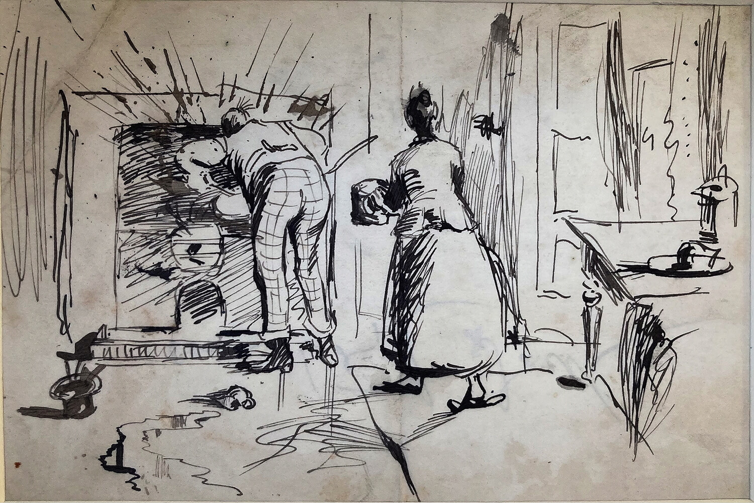 Originally trained as a surgeon, Tonks had qualified FRCS in 1888 before abandoning medicine to follow a career as an artist. Tonks became “the most renowned and formidable teacher of his generation”.Pupils of Tonks at the Slade included Winifred Knights, David Bomberg, Ethel Carrick, William Lionel Clause, Mukul Dey, Ian Fairweather, Mark Gertler, Harold Gilman, Spencer Gore, Katie Edith Gliddon, Edna Clarke Hall, Augustus John, Gwen John, Percy Wyndham Lewis, Hyam Myer, William E.C. Morgan, William Orpen, Isaac Rosenberg, Stanley Spencer, and Rex Whistler. His sarcasm there drove F. M. Mayor’s sister Alice to leave before completing her training.His student Paul Nash recalled Tonks’ withering manner: