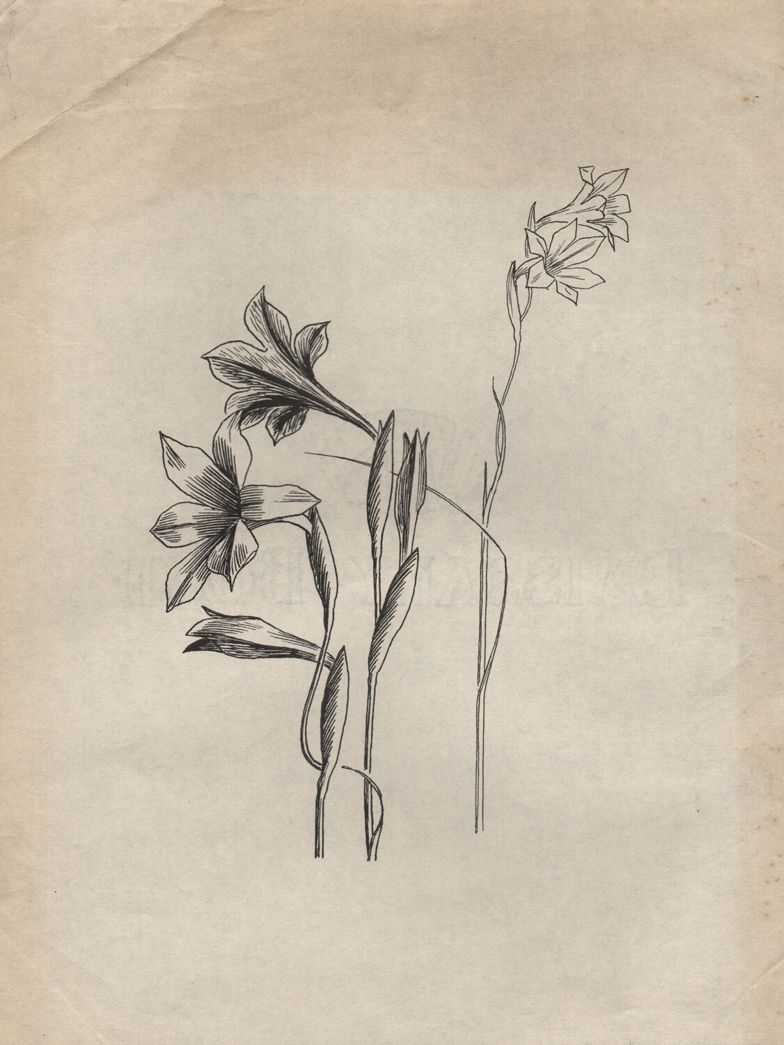 Looking at the ten studies of Gladiolus tristis presented here (CAT 46-55) it is instructive to note how obsessively Dunbar drew and redrew each plate to achieve the clarity and precision she and Mahoney were seeking. It is also interesting to realise that, despite such claims in Community of Plants’ (p.7) as: With one of us Hieraceum aurantiacum… has behaved most meekly for years… With the other it has shown signs of becoming a menace to a small garden’, Mahoney did not have a garden of his own until he and his brother bought Oak Cottage at Wrotham in 1937, the year Gardeners’ Choice was published. It is possible that he grew some plants in his mother’s small back garden at Anerley on the Kentish-London border but most of the plants discussed were probably grown at The Cedars, and in the sheet of sketches (CAT 56-58) we get several vignettes of Mahoney seated in the garden there drawing diligently..”