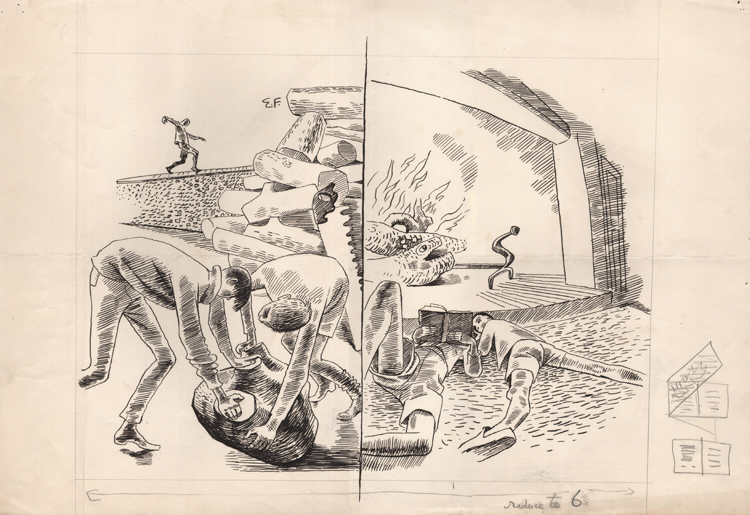 Hop-picking, sketch for Farming Weekly, March 1954.