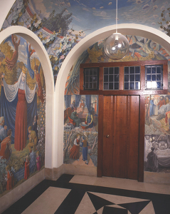Mahoney was commissioned to produce a mural scheme for the Lady Chapel at Campion Hall in 1941. The scheme