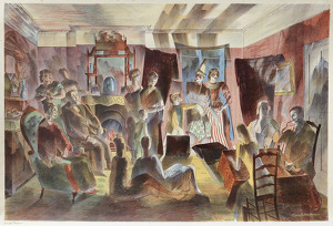 In the final version of the composition the seated figure is turned in profile and joined by a host of other revellers but the setting, probably Freedman’s own sitting room, remains unchanged.