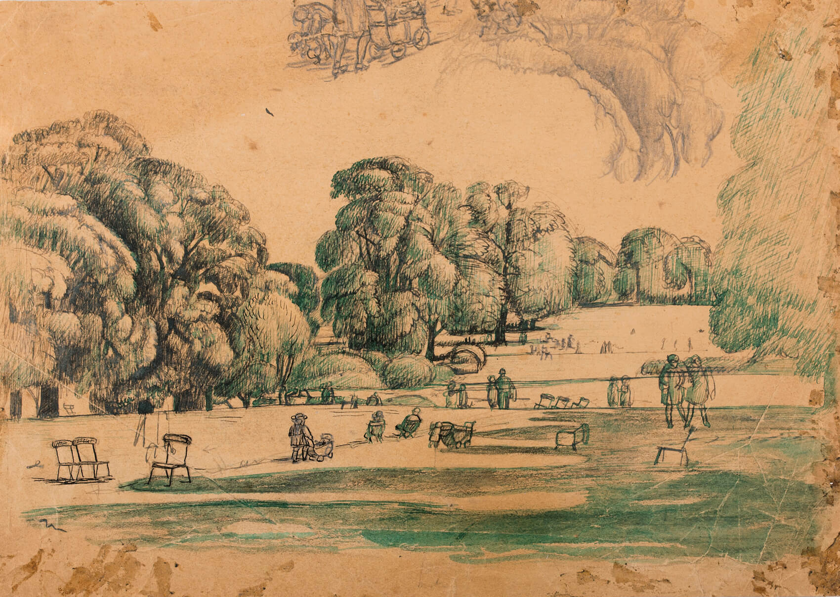 Study for Hyde Park, circa 1931, the artists coat and hat