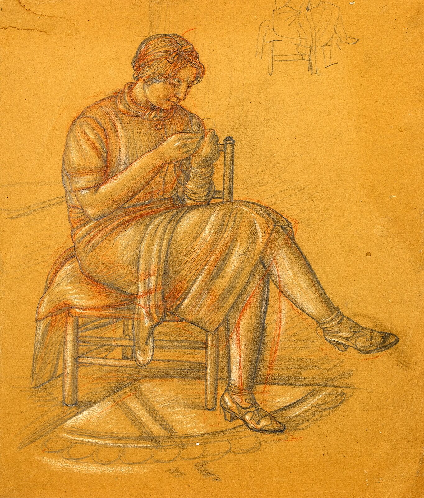 Pencil, red and white chalk on brown paper