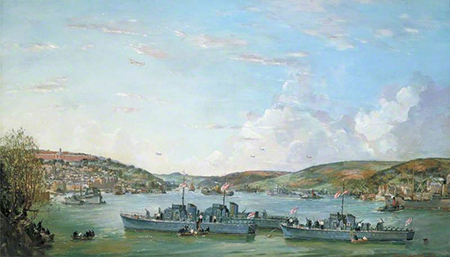 His technical facility – especially when working on large panoramic canvases – was remarkable. His pictures are rich with texture, light and movement. He was equally at ease with aerial views, landscapes, seascapes and cityscapes, and was a master of crowd scenes. His work as an Official War Artist has never received the attention it merits.