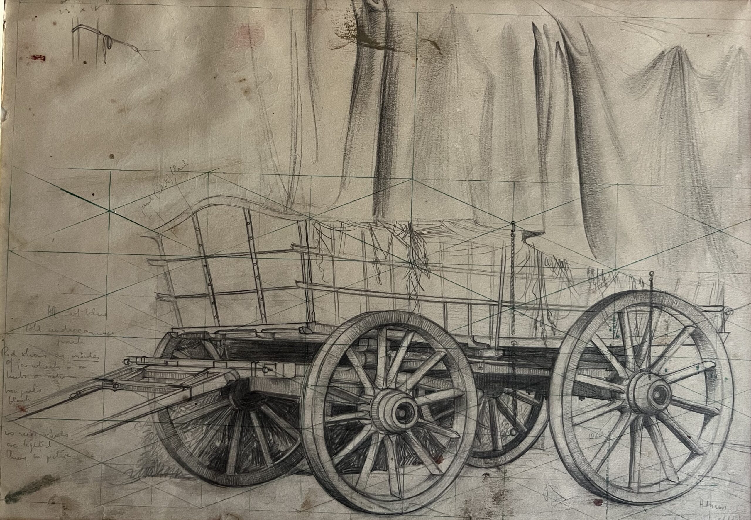 Signed, inscribed and partially squared. Mounted. Pencil, charcoal and pen