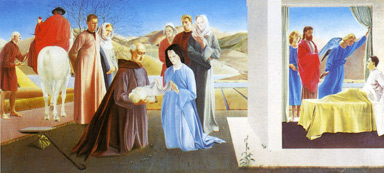 Winifred Knights was born in Streatham, London in 1899. She studied at the Slade School of Fine Art (1915’17, 1918’20 and 1926’27) . In 1919 she jointly won the Slade Summer Composition Competition with A Scene in a Village Street with Mill-Hands Conversing. In 1920, she became the first woman to win the Scholarship in Decorative Painting awarded by the British School at Rome. She remained in Italy until December 1925, marrying fellow Rome Scholar Thomas Monnington (1902’1976) in April 1924. On her return to England, Knights received a commission to paint an altarpiece for the Milner Memorial Chapel in Canterbury. A major commission for the Earl of Crawford and Balcarres, on which she had been working for five years, remained unconcluded at her early death, aged 47.
