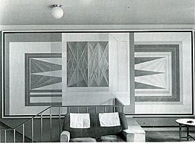 The Gilbert Spencer mural has remained in situ, but been painted over.