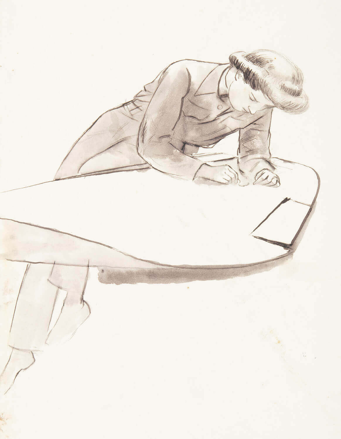 At the request of Sir Kenneth Clark, Chairman of the War Artists’ Advisory Committee, to record the activities of the Women’s Auxiliary Air Force, Dunbar visited RAF Gravesend, where she recorded this Airwoman working on a chart in the meteorological room. Another, more developed version of this activity features a different WAAF officer, Section Officer Austen, Women’s Auxiliary Air Force Meteorologist, now at RAF Museum, Hendon, London.