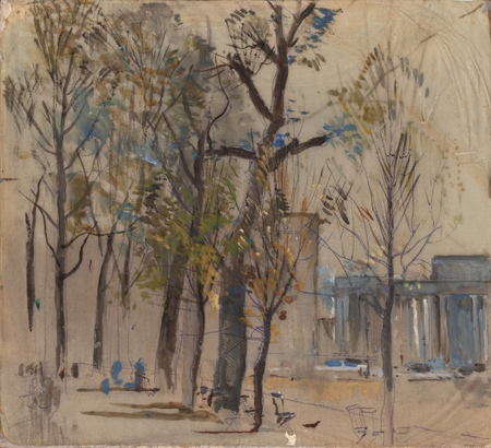 His technical facility – especially when working on large panoramic canvases – was remarkable. His pictures are rich with texture, light and movement. He was equally at ease with aerial views, landscapes, seascapes and cityscapes, and was a master of crowd scenes. His work as an Official War Artist has never received the attention it merits.