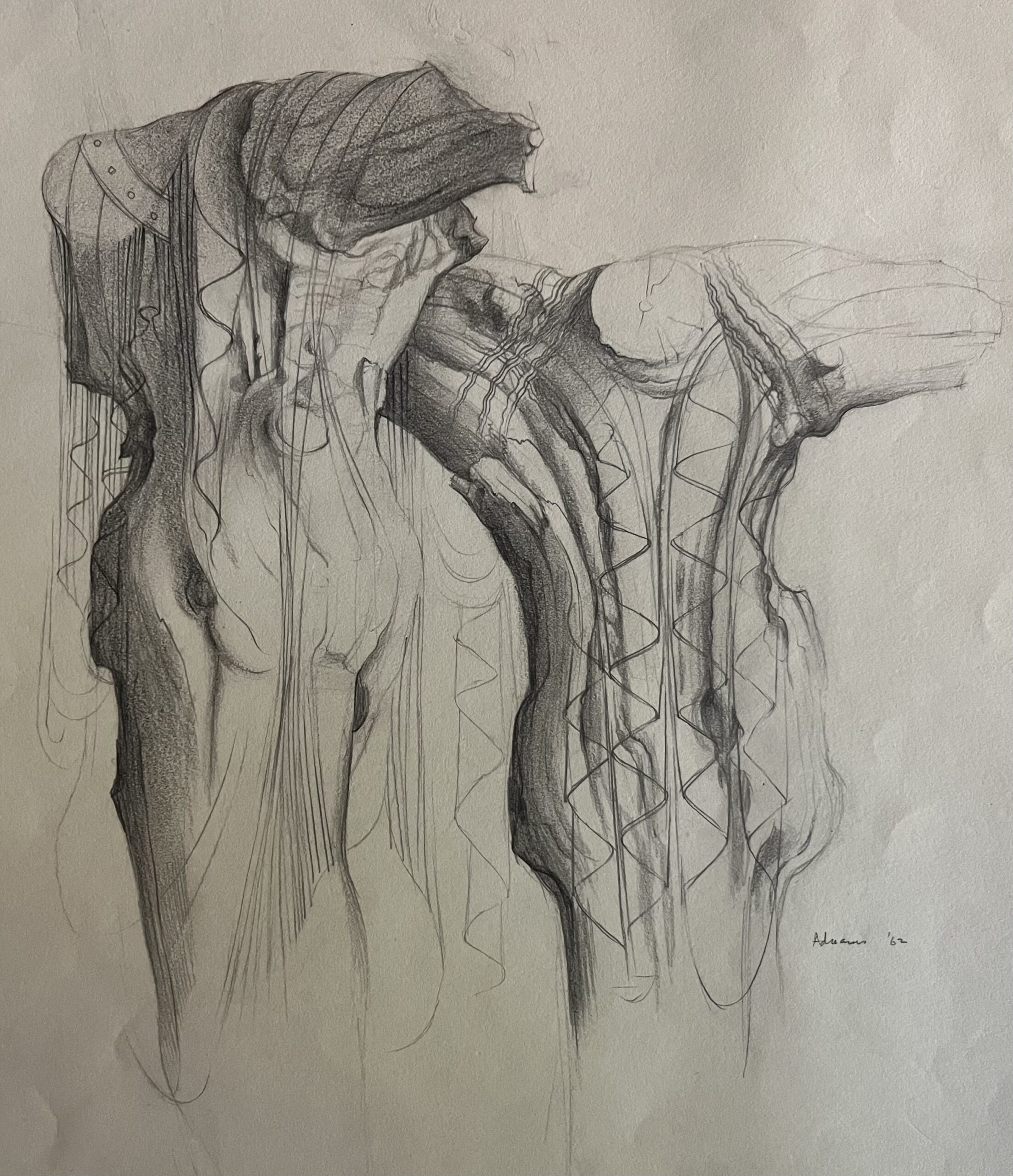 In 1930 Adnams started attending life classes at Derby School of Art.  Her extra ordinary facility for drawing was much remarked upon, (one teacher remarking that she ‘drew like a man, direct with no rubbing out, quoted by Ray Gosling, Marion Adnams, A Retrospective, Midland Group Gallery 1971).