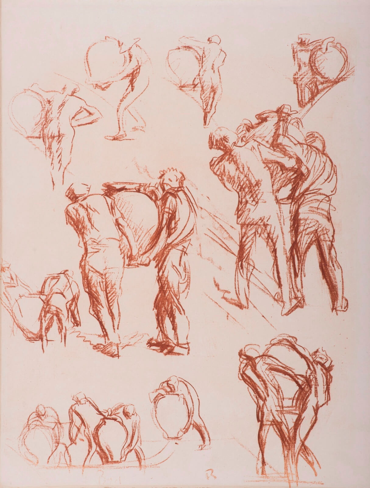 Study of Men Carrying Oil Jars (D1590), circa 1923