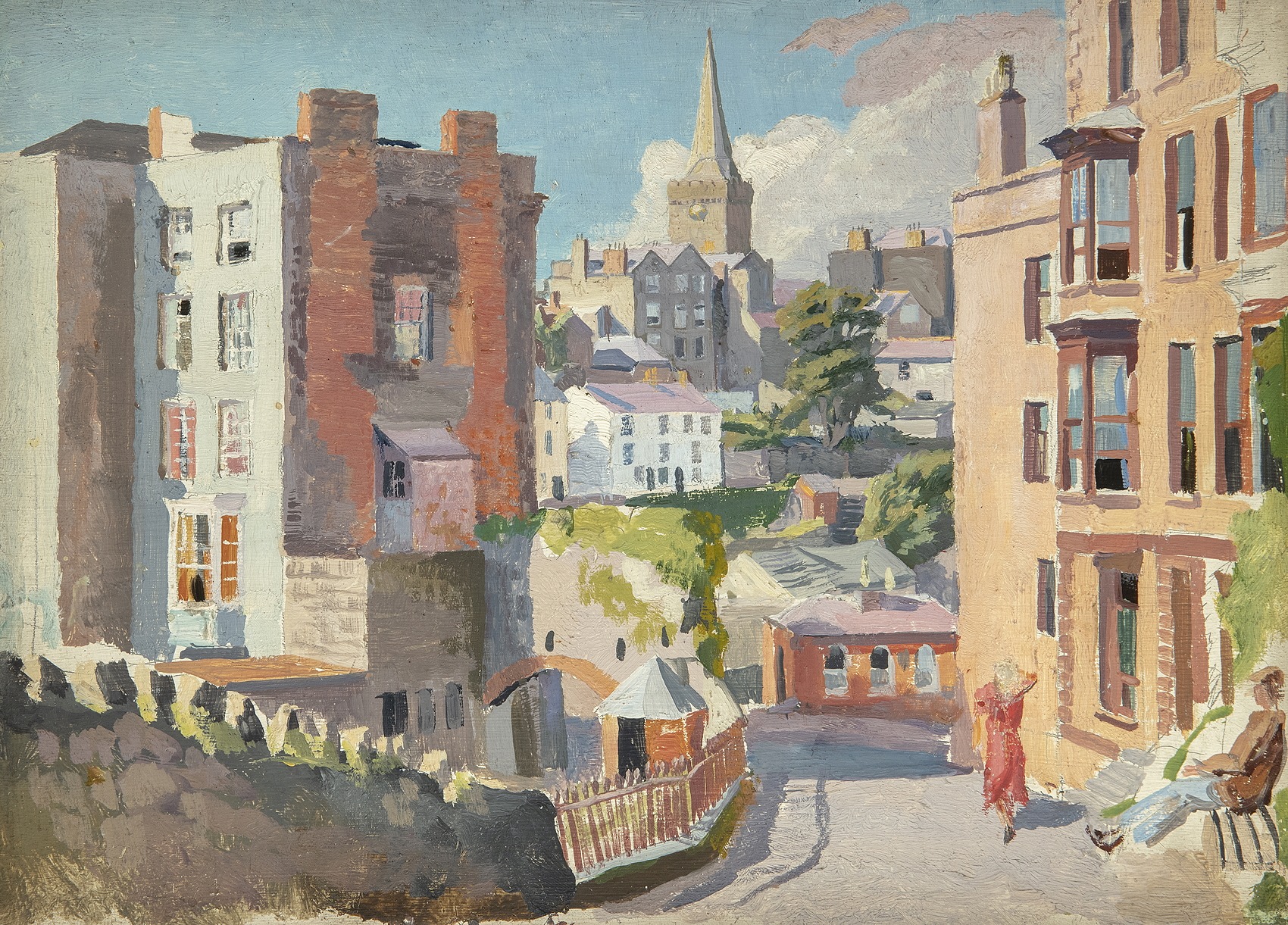 Bone’s panels were painted out of doors in just a few hours of intense concentration and testify to his painterly skill and sure sense of colour. They show his family and friends and also his knowledge and love of landscapes and townscapes in the l930s and 40s so much of which has now changed or disappeared. From Ireland to Sweden and from Scotland to Spain he carried his wooden paintbox fitted out with paints, brushes and a rack of 3 or 4 primed panels. His remarkable productivity – he aimed to paint at least one panel a day – was only curtailed by his premature death at the age of 54.