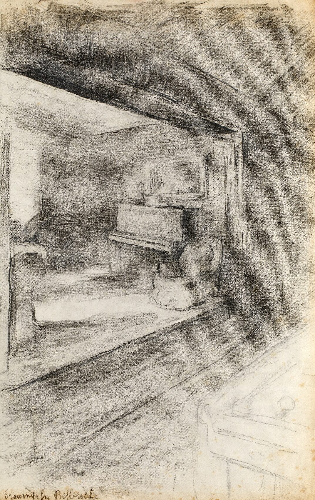 Although born in Wales, he was the son of the Marquis de Belleroche, of one of the most ancient French noble families who, being Huguenots, had fled to England in 1685. In 1871, following the death of his father, he moved back to Paris with his family. After he had finished school there, he studied at the studio of Carolus Duran, and spent long hours copying at the Paris museums. He soon became familiar with the leading painters and intellectuals of the day, and became a founder member of the Salon d’Automne, exhibiting alongside the Impressionists and associating with Emile Zola, Oscar Wilde, Albert Moore, Renoir, Degas, Helleu and Toulouse-Lautrec. Toulouse-Lautrec and Belleroche were exact contemporaries, who first met at the age of eighteen. Belleroche painted Toulouse-Lautrec’s portrait and shared with him a passion for the model Lili, who epitomised the Belle Epoch aesthetic of Toulouse-Lautrec’s most celebrated posters. Lili became Belleroche’s favourite model and mistress. In 1882 Belleroche also met the already acclaimed American painter John Singer Sargent, who recognised Belleroche’s talent and empathised with his free drawing style and sensitivity to light. They became life-long friends. Sargent’s handling of pastel was a great inspiration to Belleroche, while Belleroche’s sensitivity to tone and creation of form through the modeling of light exerted a strong influence on Sargent. In 1900, Belleroche became fascinated by the medium of lithography and by 1905 he was a leading figure in the field of lithographic portraiture. A.M. Hind, a former keeper of prints at the British Museum, described his works in lithography as “amongst the greatest achievements of the craft since its discovery.”