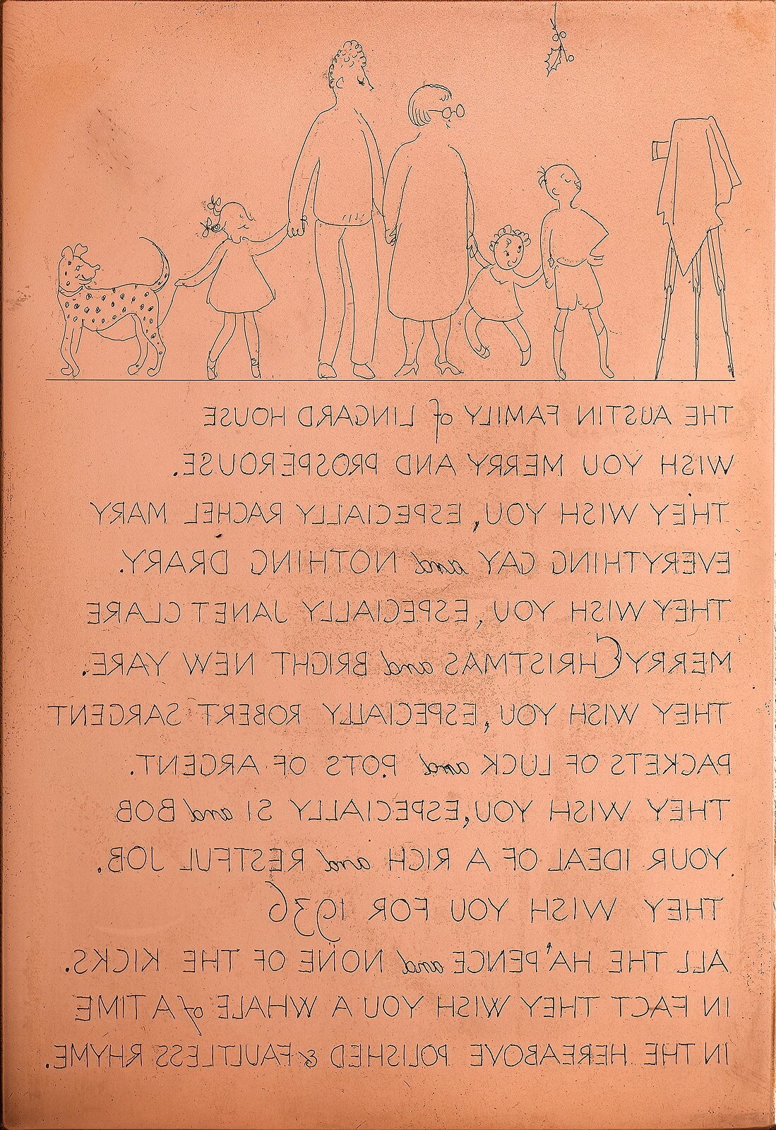 The Austin Family of Lingard House, the original copper etching plate, 1936