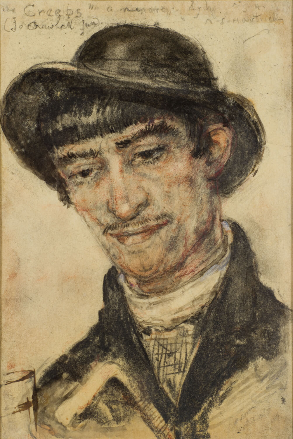 Hartrick states that Crawhall looked and rode like a Jockey’, and recorded him as such in this portrait drawing which he later reproduced in his memoir.