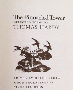 The Darkling Thrush was usedĀ for the title page of The Pinnacled Tower, Selected Poems by Thomas Hardy, editid Helen Plotz, New York: Macmillan Publishing Co, 1975.