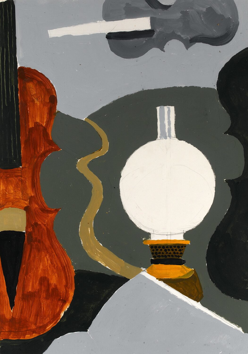 In a letter to the Tate Gallery, dated 4 May 1988, the artist writes of this work: ‘there was no finished work, as such. It ended up with overlays very often two or three thick, to try out colours’. The image is directly inspired by the images in the poem, ‘the violin on the left is repeated as a tree form on the right, all bathed in autumnal light’.