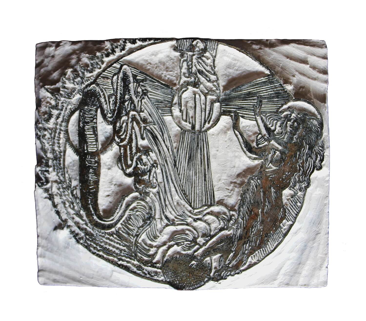 Frederick Carter’s deep interest in alchemy and all aspects of the supernatural and the occult, led him to produce an esoteric symbolism which is apparent throughout his work. Nowhere is this displayed more clearly than in his works for The Dragon of the Alchemists. Frederick Carter provided little or no explanation regarding the significance of his imagery which combines symbols of established religion with those of mysticism and it is likely that he intended the meaning of many of his images to remain shrouded in mystery.