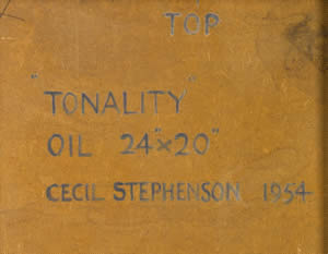 When in the fifties, I became engaged to Simon (David) Guthrie, he took me to meet his mother, Kathleen Guthrie, and his stepfather, Cecil Stephenson. They lived in a studio; to me, a novel idea. 6, Mall Studios, in Belsize Park, had been Cecil’s habitat for some thirty years. The main studio was a large room with a big north light running from the floor up into the roof. In one corner were Cecil’s easel and paints; in another were his machine tools and lathes and in a third was his piano. The fourth corner contained a sofa and some bookcases, where Kathleen could sit and read, or listen to Cecil playing his favourite Brahms or Chopin. Kathleen was Cecil’s second wife. She was herself a professional artist; a Sladey-lady and like Cecil, a founder member of the Hampstead Artists’ Council. There wasn’t room for her to paint in the studio, so Cecil had built her a painting shed in the garden. The garden also had a small pond with a large population of newts and some very decorative Koi carp, and a monorail for Cecil’s hand-built model steam locomotive. Cecil was a warm-hearted man of many talents, but modest and self-effacing, and meticulous in all his many undertakings. His output of paintings was small, due to the pressures of earning a living by teaching, and his inability to refuse requests for his engineering skills, whether it was to make a new part for a friend’s old Lagonda, dash off a metal staircase or a new set of wrought-iron gates. Perhaps he was overshadowed by his brilliant friend and erstwhile neighbour, Ben Nicholson. Other neighbours included Barbara Hepworth and John Skeaping, the art critic and writer Sir Herbert Read, and later, Henry Moore and Bernard Meadows. When Cecil died, he left quite a body of works which the family have cherished and enjoyed for the last forty years. These include most of the pictures in this exhibition. Simon retired from academic life in 1990 and he devoted himself to trying to promote his stepfather’s reputation. First he wrote a biography, based largely on Cecil’s abbreviated but carefully kept diaries. He then devoted much time and energy to trying to persuade a gallery to mount a proper retrospective of Cecil’s work, particularly the early abstracts. Remembering Cecil’s northern roots, he tried hard to interest various galleries in the north of England in such an exhibition. Sadly his ambition was never achieved. So his family were very willing to co-operate with the suggestion of The Fine Art Society to mount this show, in the hope that many more people could derive pleasure and satisfaction from these fine paintings.