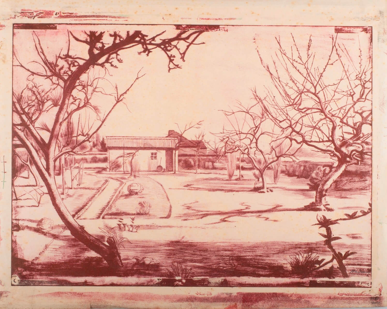 Lithograph, printed in red ink.