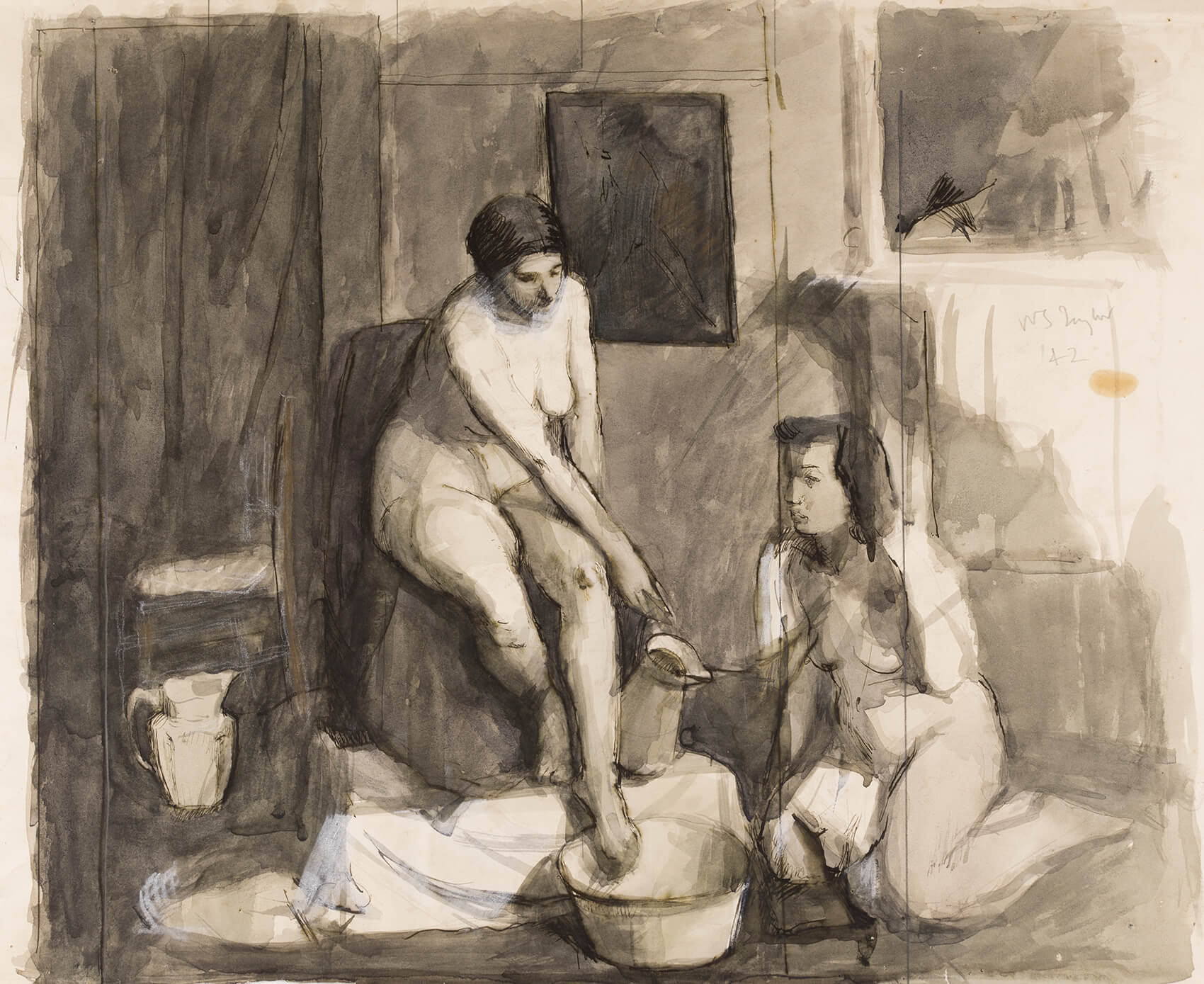 Taylor’s pictures combine figure and landscape with strong Neo-Romantic overtones, and are saturated with lyricism and a sense of longing. His compositions are frequently set in the artist’s Devonshire garden and usually include portraits of his wife, Audrey Wallis (1919-1997).