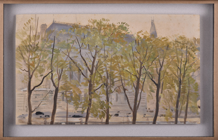 Both before and after the Second World War Cundall made numerous sketching trips, traveling extensively in Europe. He was especially drawn to Paris and scenes along the Seine. Painting in oil on paper, en plein air,these works retain a vitality which Cundall sometimes lost when working up the finished, larger, paintings in his studio.