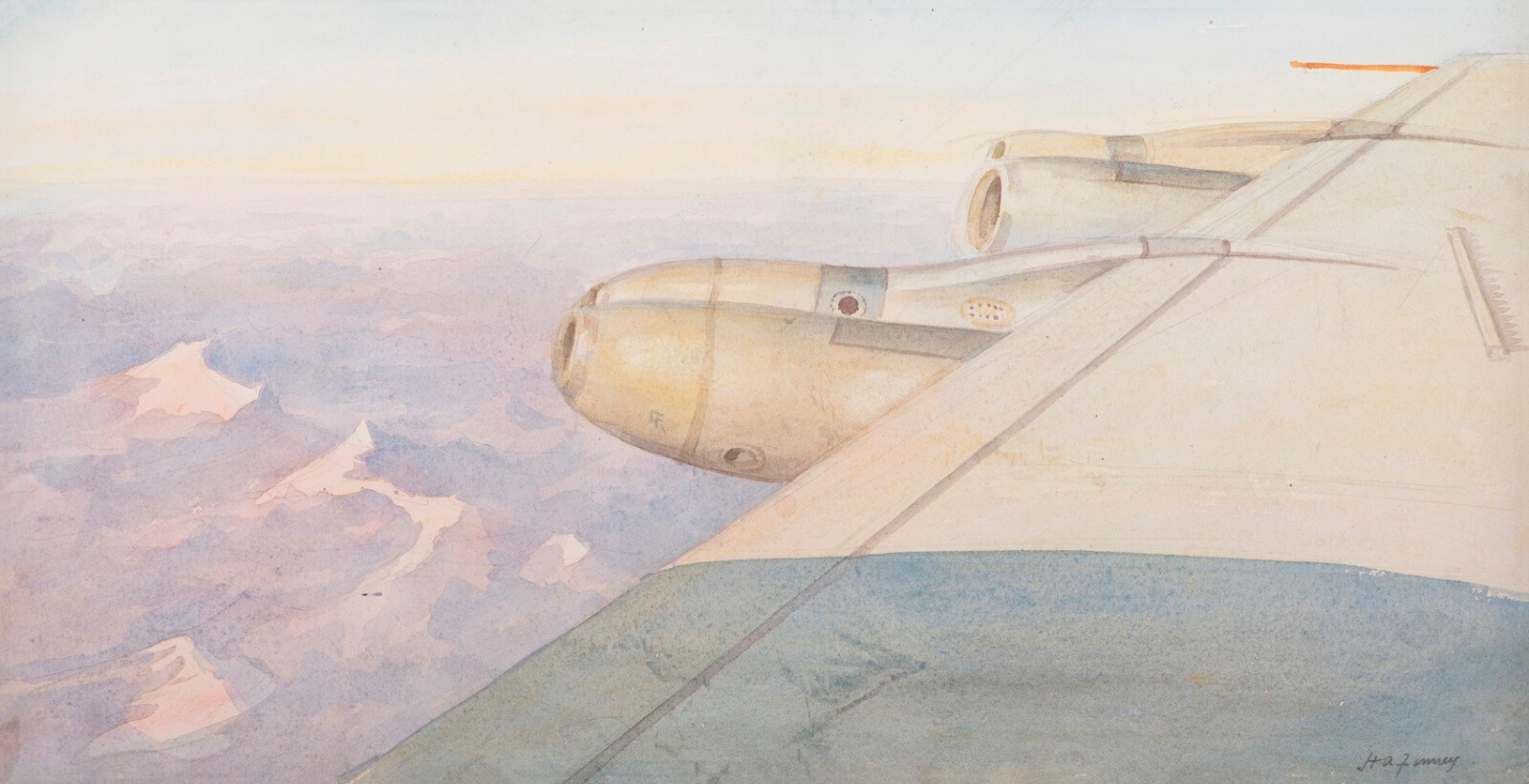 Finney exhibited with the Civil Defence Group of artists throughout the war, and his soft, aerial views added a distinctive element to these shows. He returned to the subject of aircraft as a source of inspiration for his compositions throughout his career